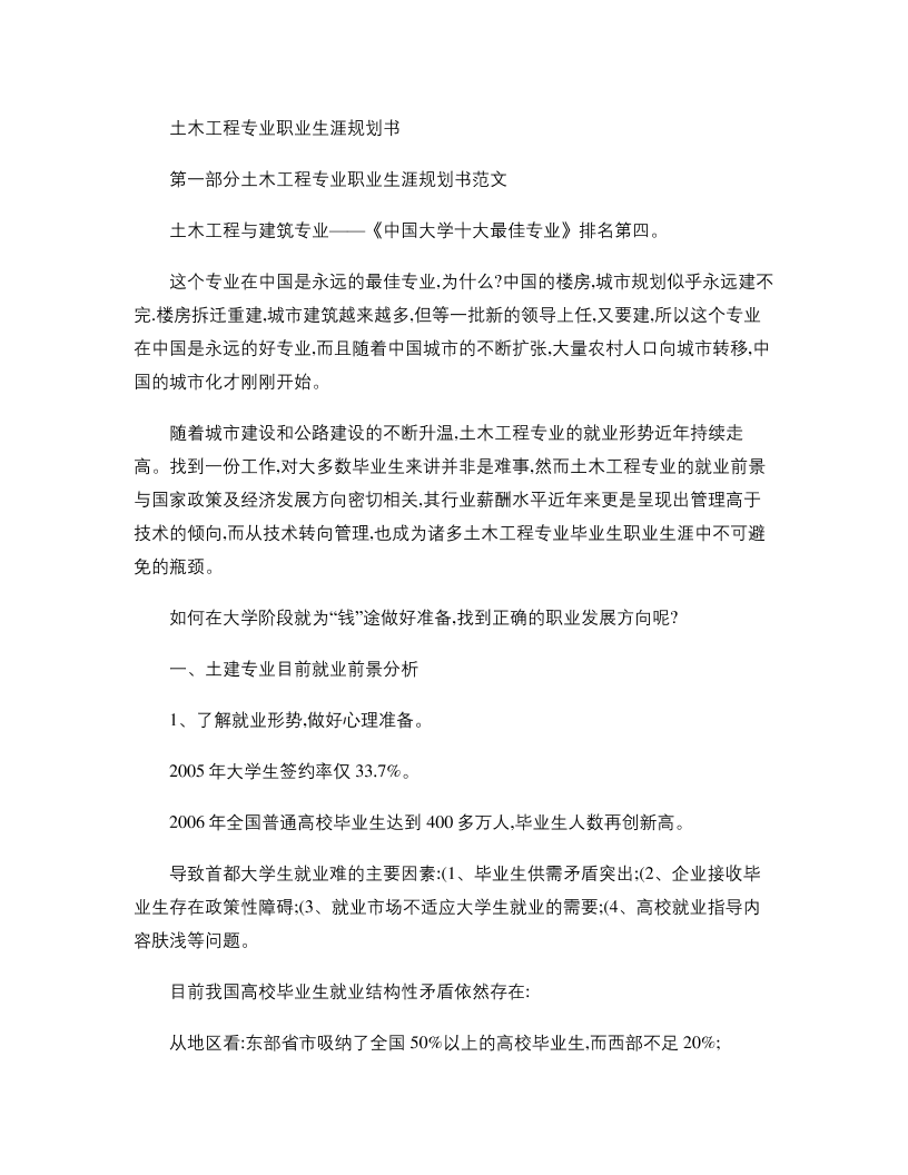 大 学 生 土 木 工 程 职 业 生 涯 规 划 书
