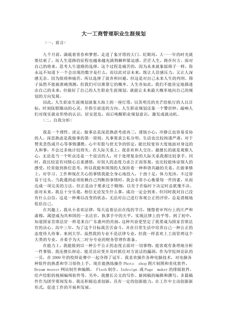 工商企业管理专业职业生涯规划书---大学生职业生涯规划书(最新模板范文)