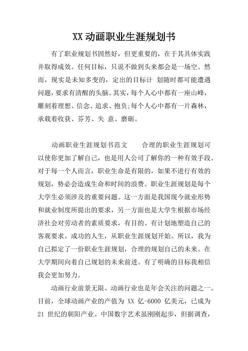 XX动画职业生涯规划书