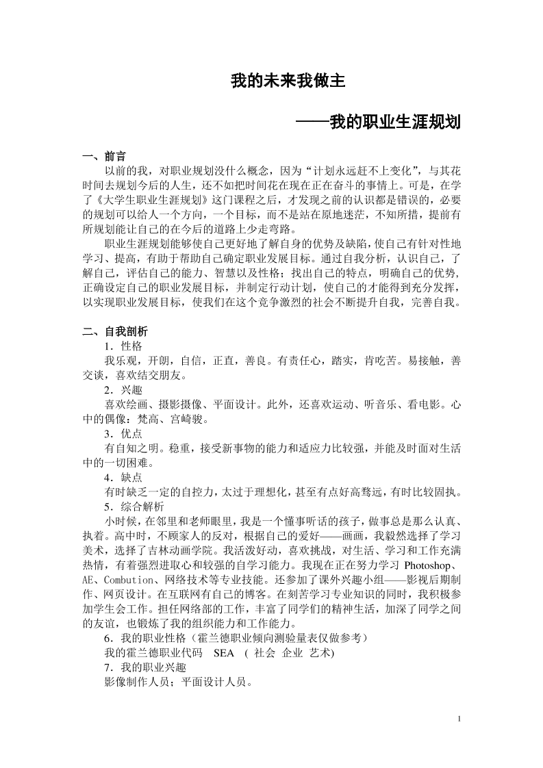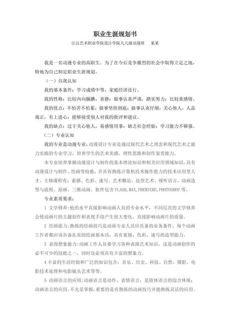 职业生涯规划书--动漫班