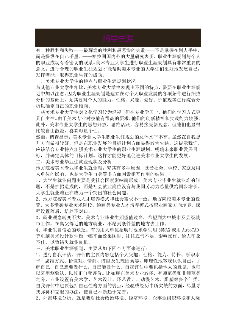 美 术 职 业 生 涯 规 划 书