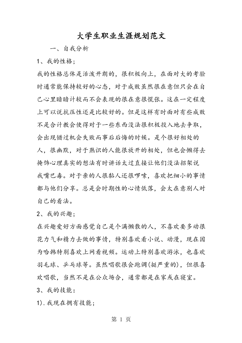 2019大学生职业生涯规划范文-精品教育.doc