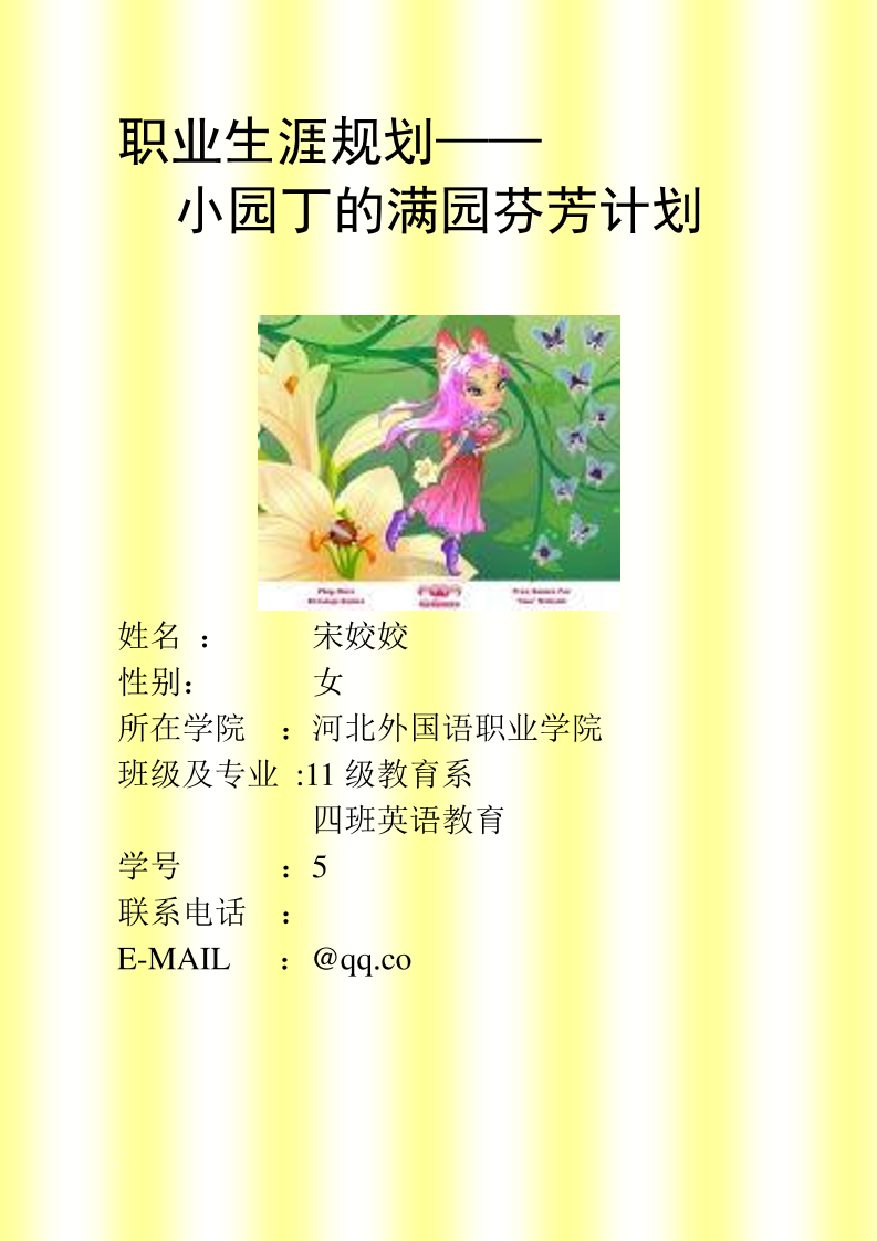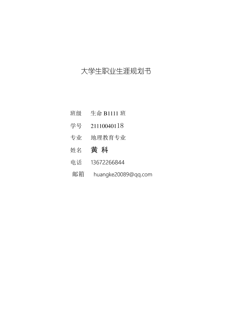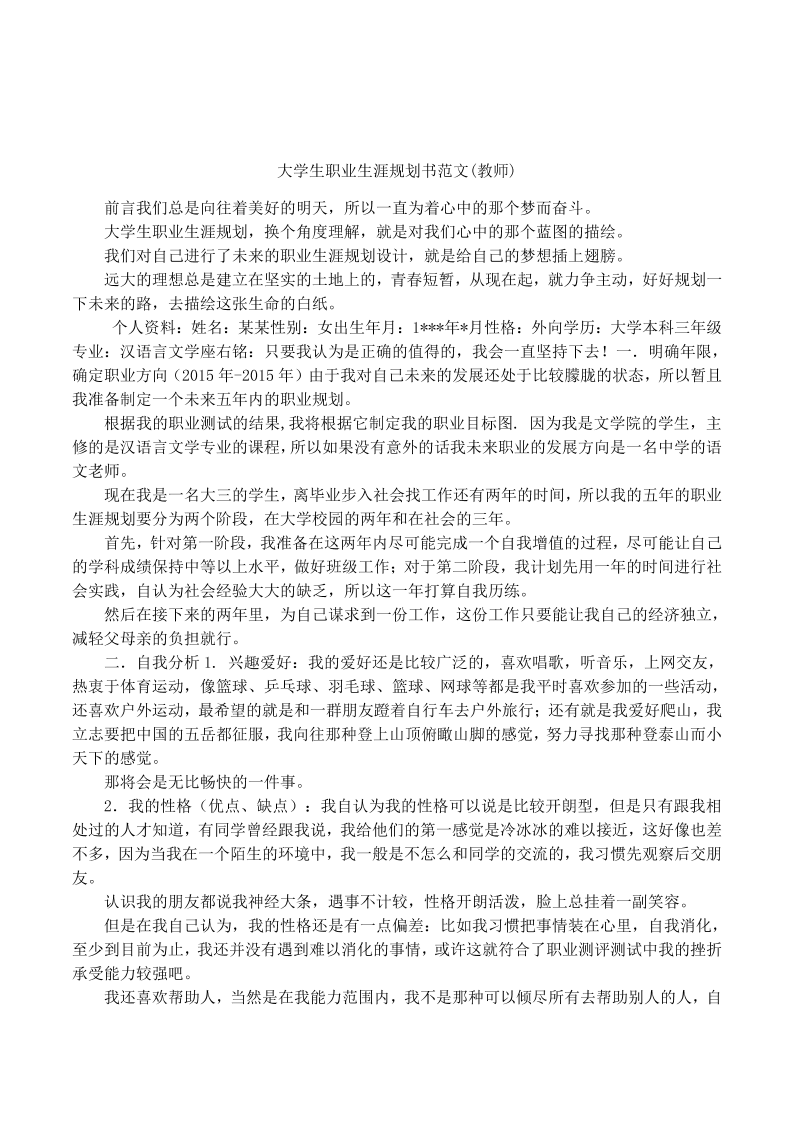 大 学 生 职 业 生 涯 规 划 书 教 师 职 业