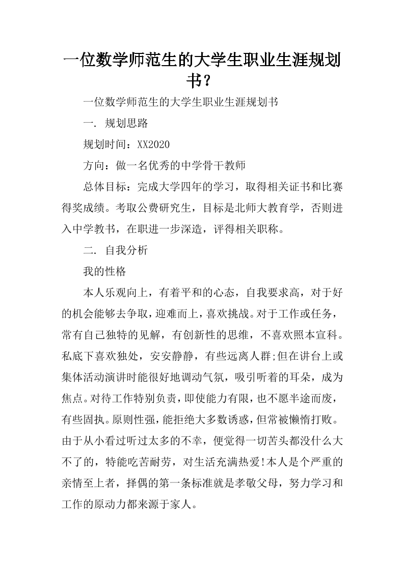 一位数学师范生的大学生职业生涯规划书?