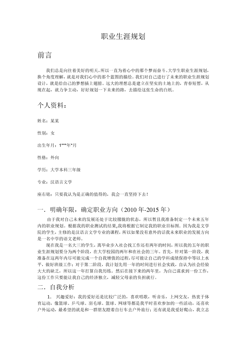 • 生涯规划书模板