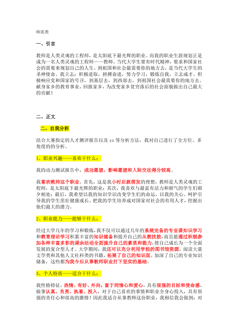 大学生职业生涯规划范文(师范类)(1)