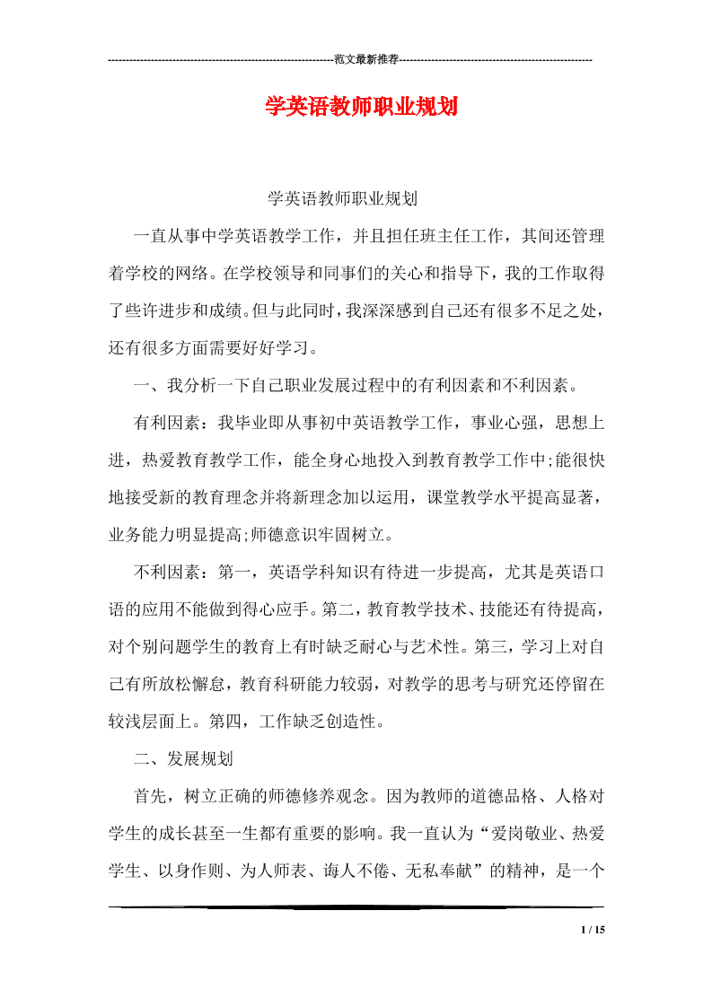 学英语教师职业规划