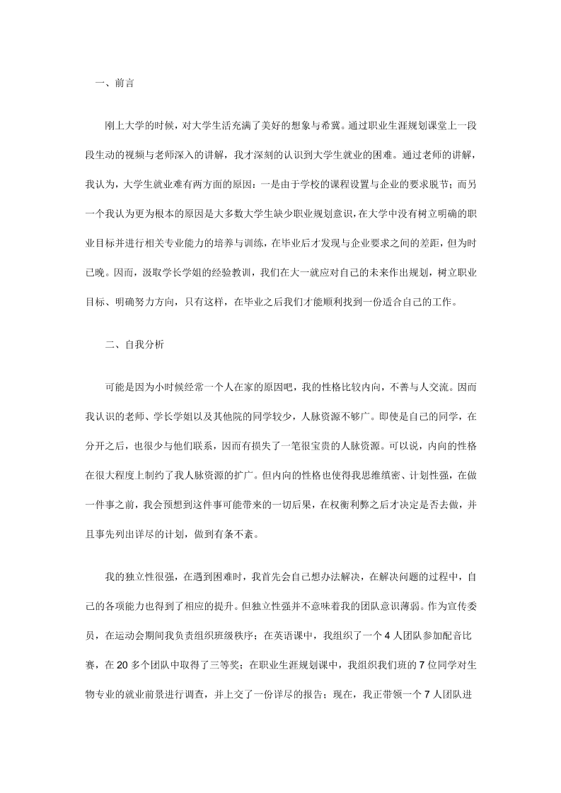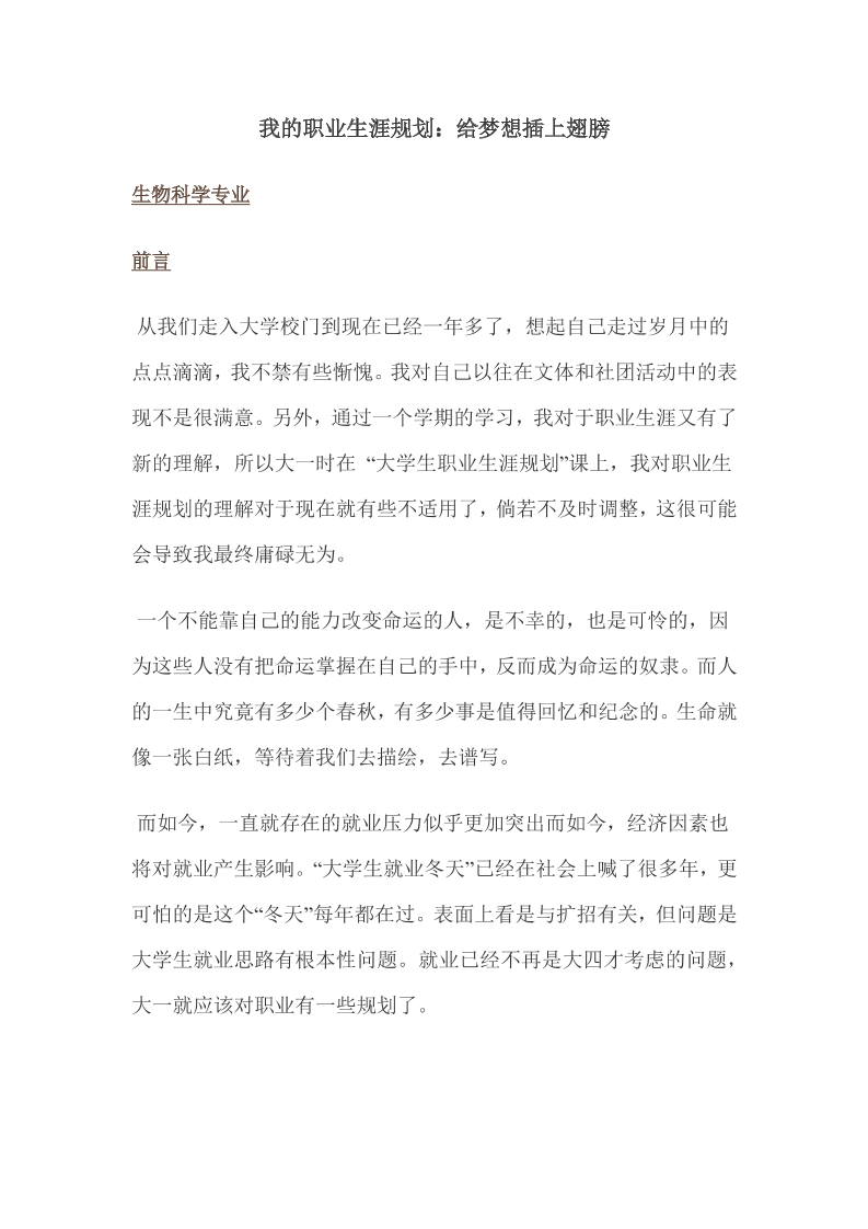 生物科学专业——我的职业生涯规划:给梦想插上翅膀