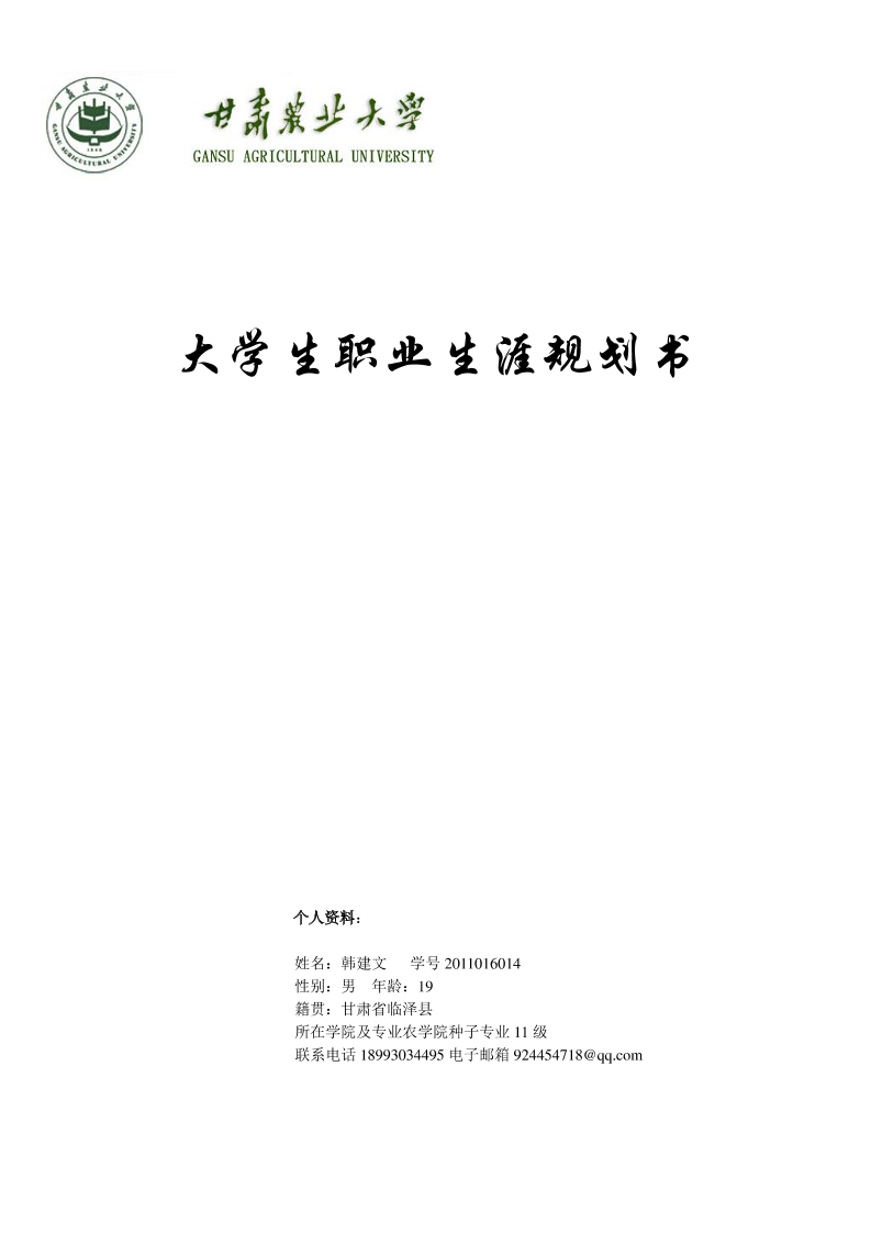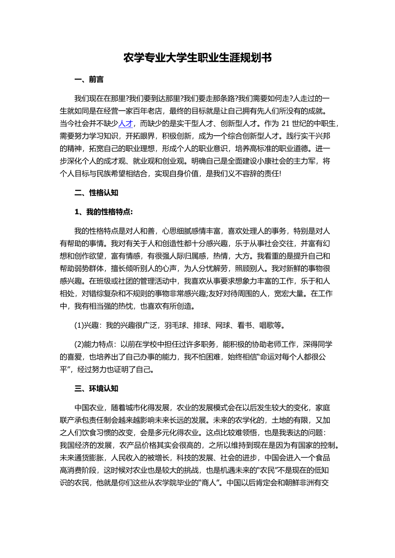 农学专业大学生职业生涯规划书