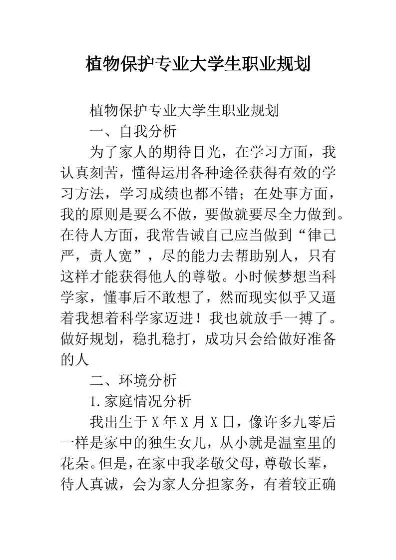 植物保护专业大学生职业规划-2019年精选范文