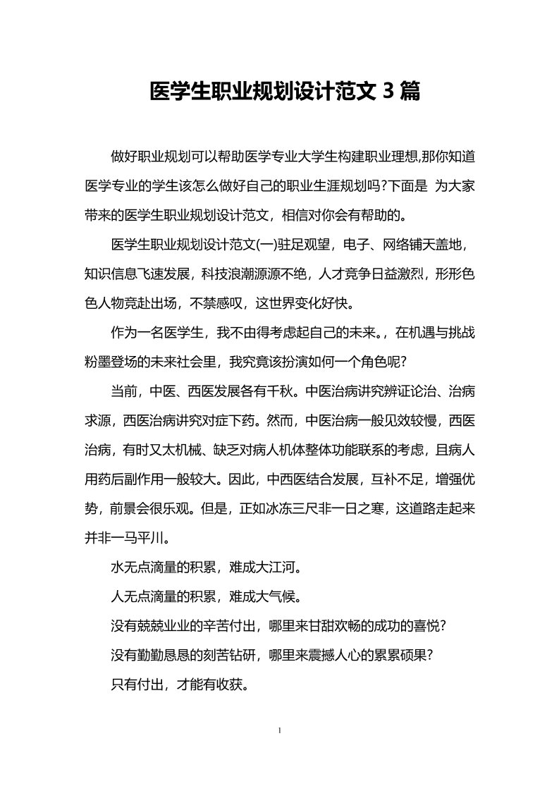 医学生职业规划设计范文3篇