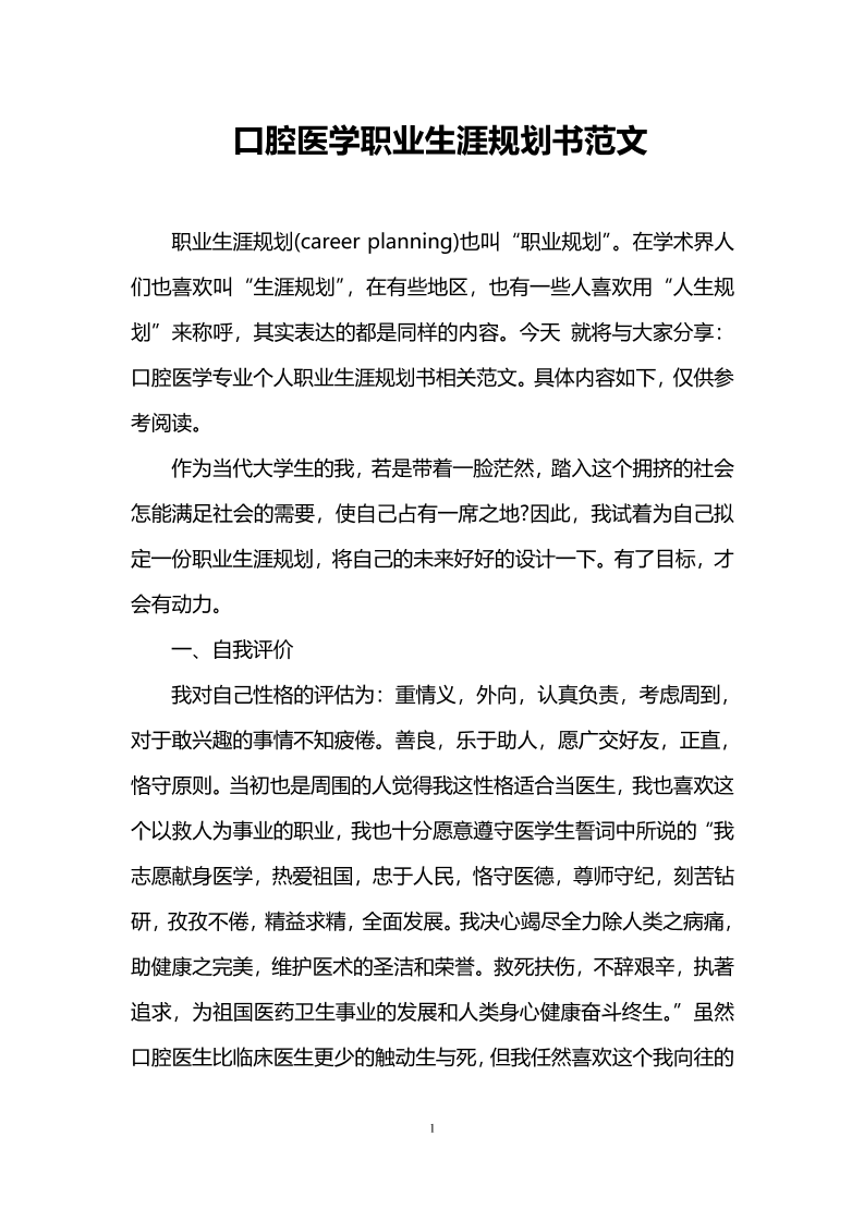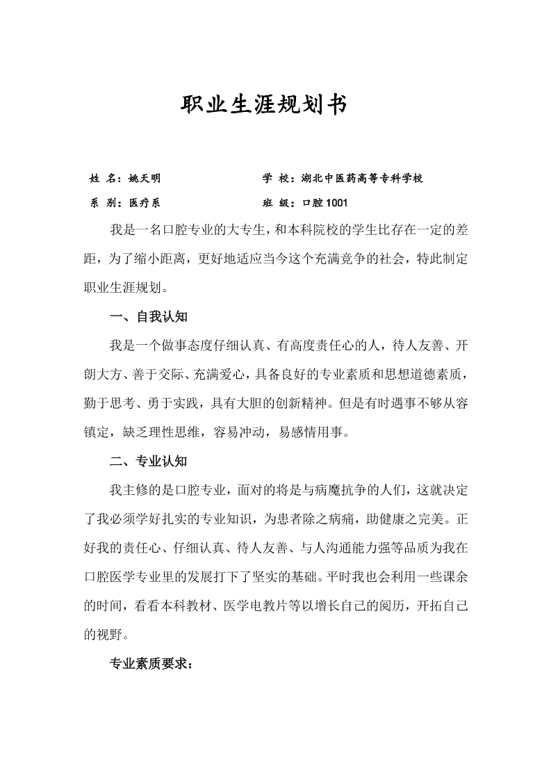 口腔大学生职业生涯规划书