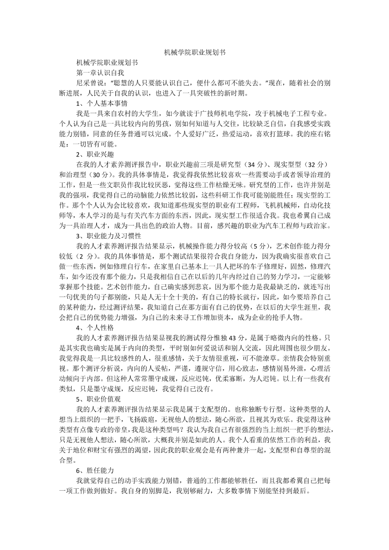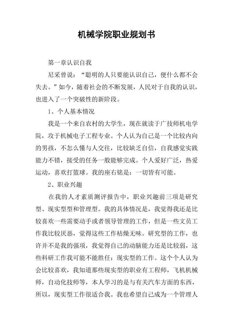 机械学院职业规划书 (1)