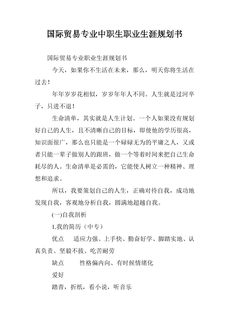 【国贸专业大学生职业生涯规划书范文】-大学生生涯规划书范文