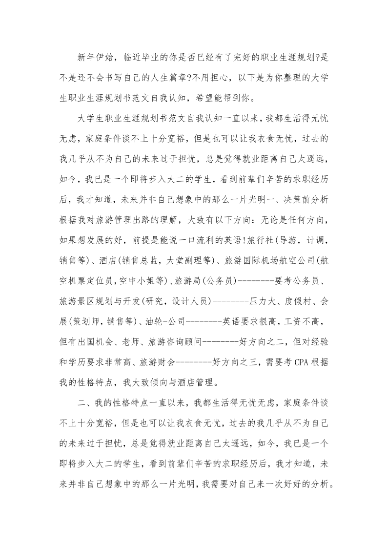 大学生职业生涯规划书范文自我认知