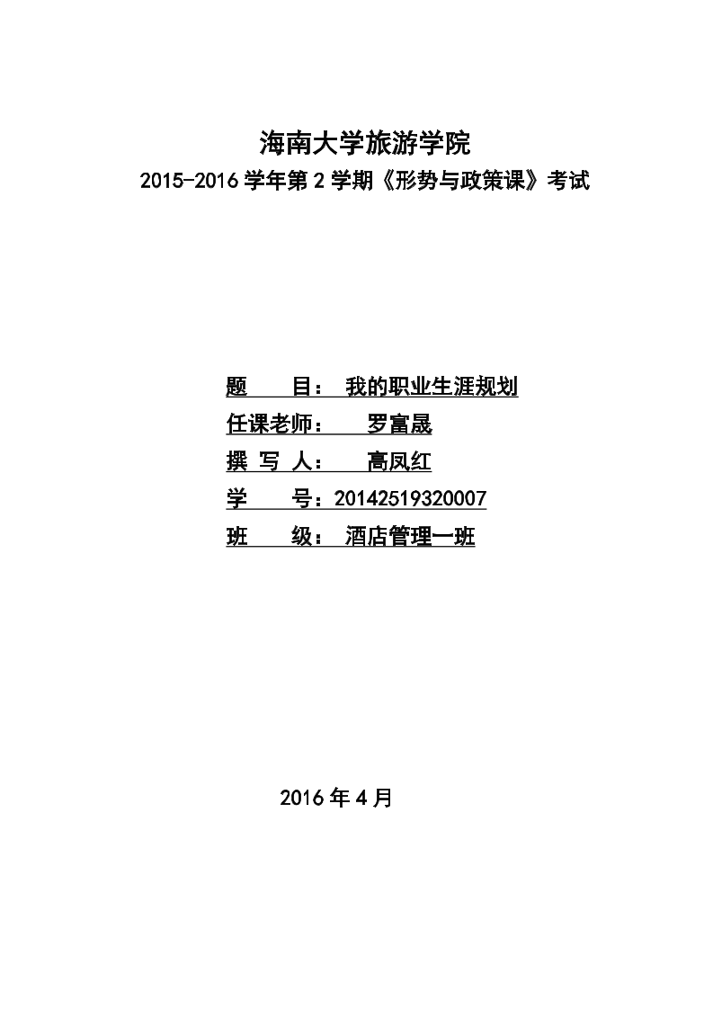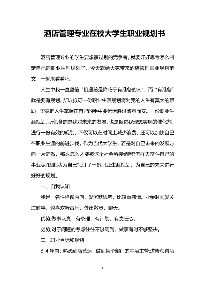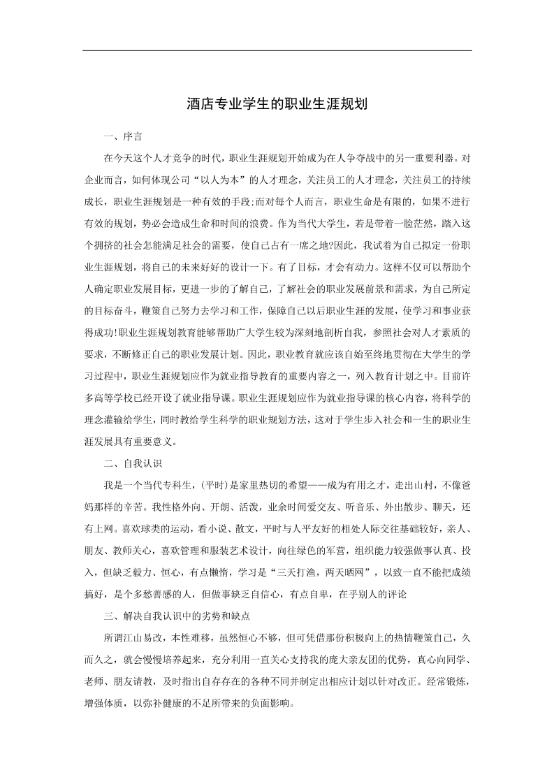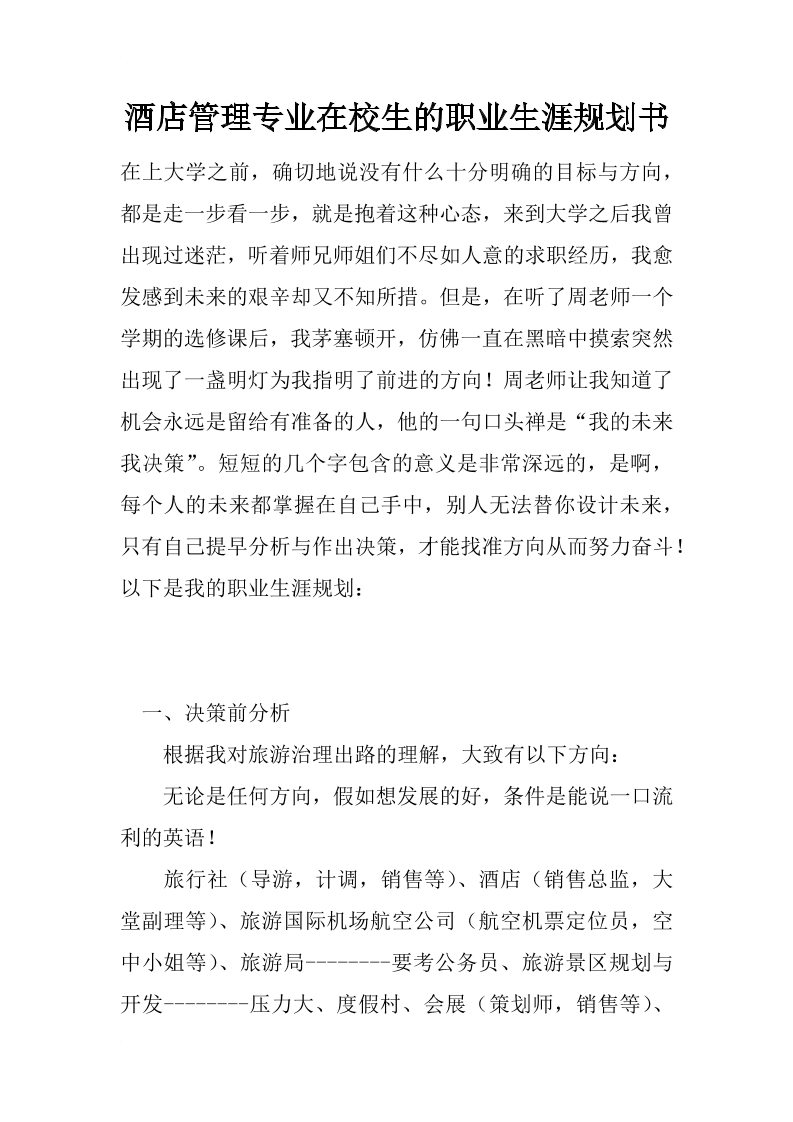 大学生职业生涯规划书-酒店管理专业