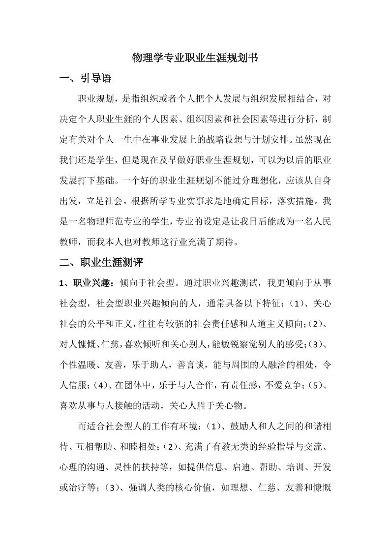 物理学职业规划书