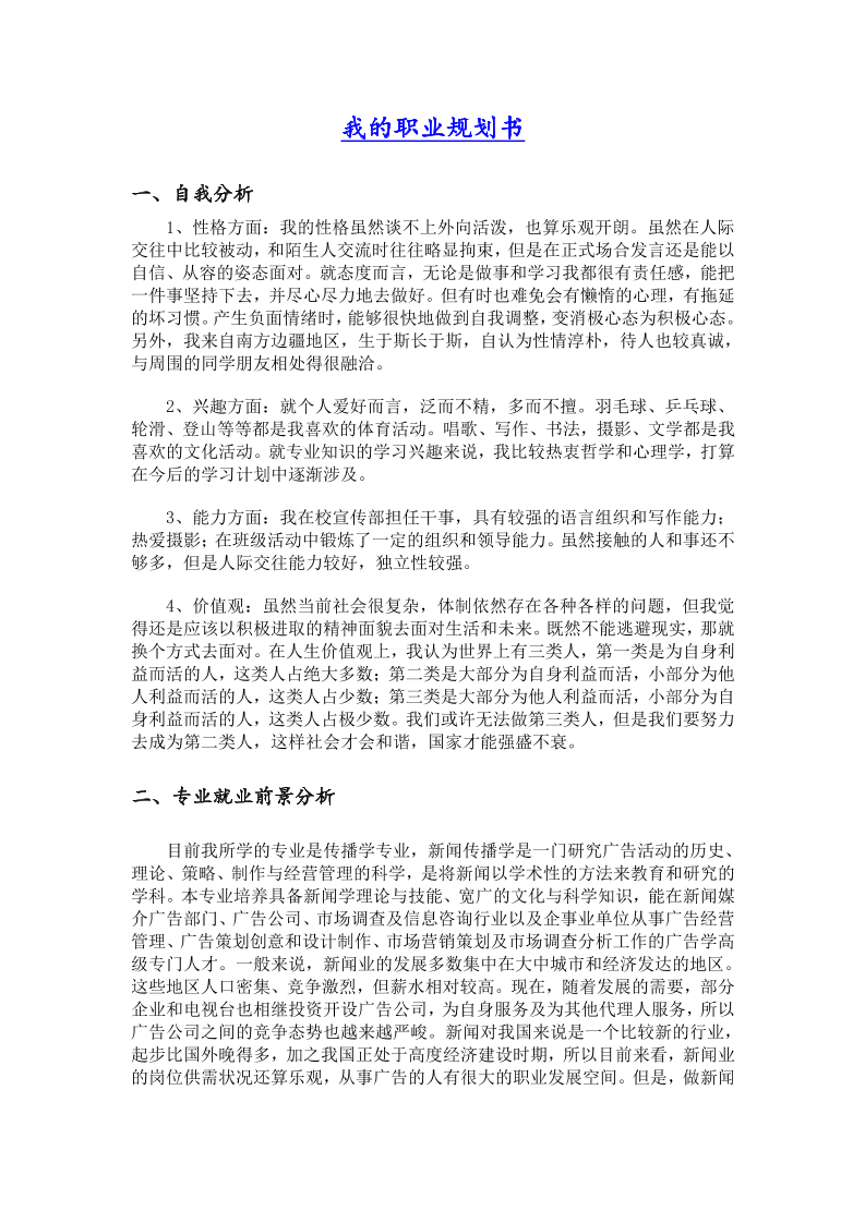 广播电视大学职业生涯规划书范例