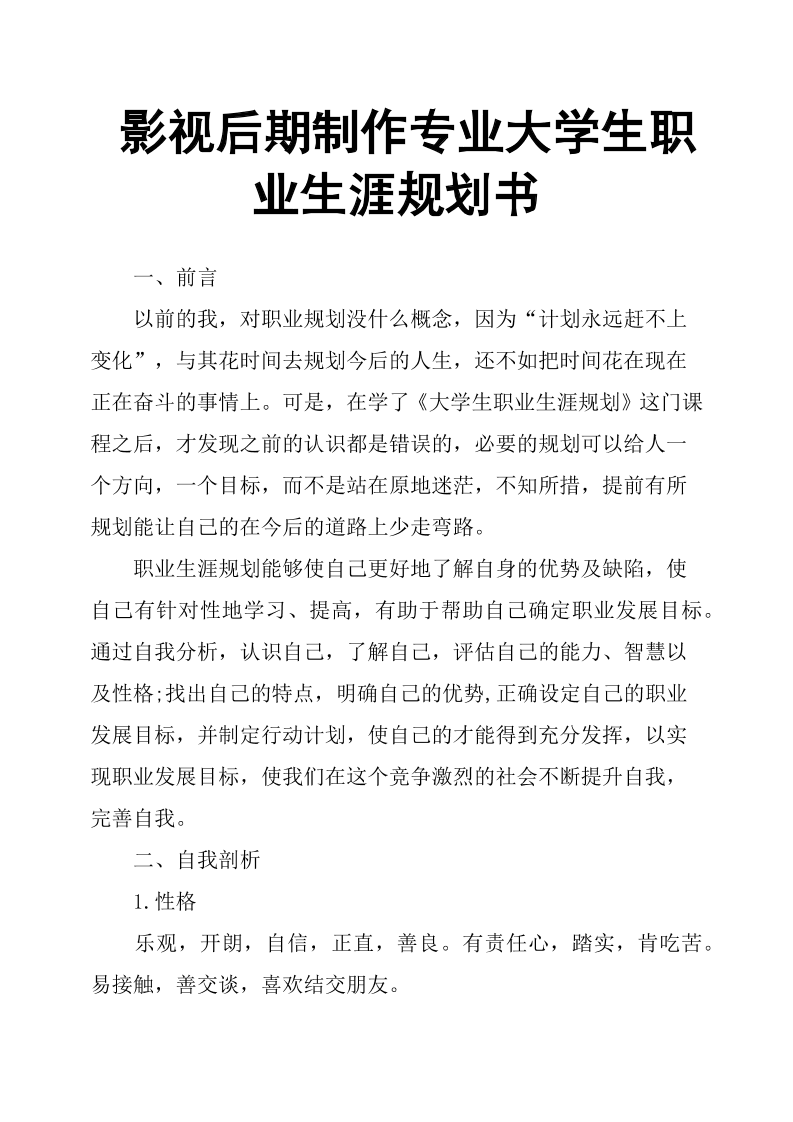 影视后期制作专业大学生职业生涯规划书