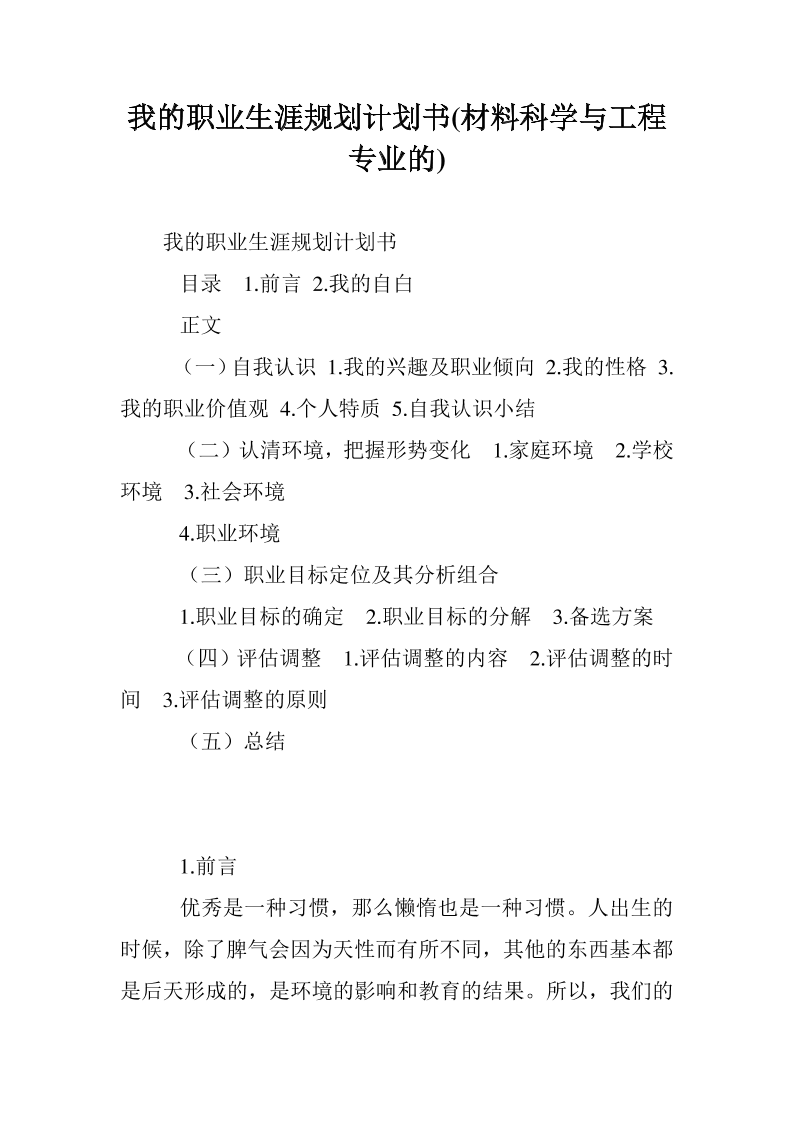 我的职业生涯规划计划书(材料科学与工程专业的)