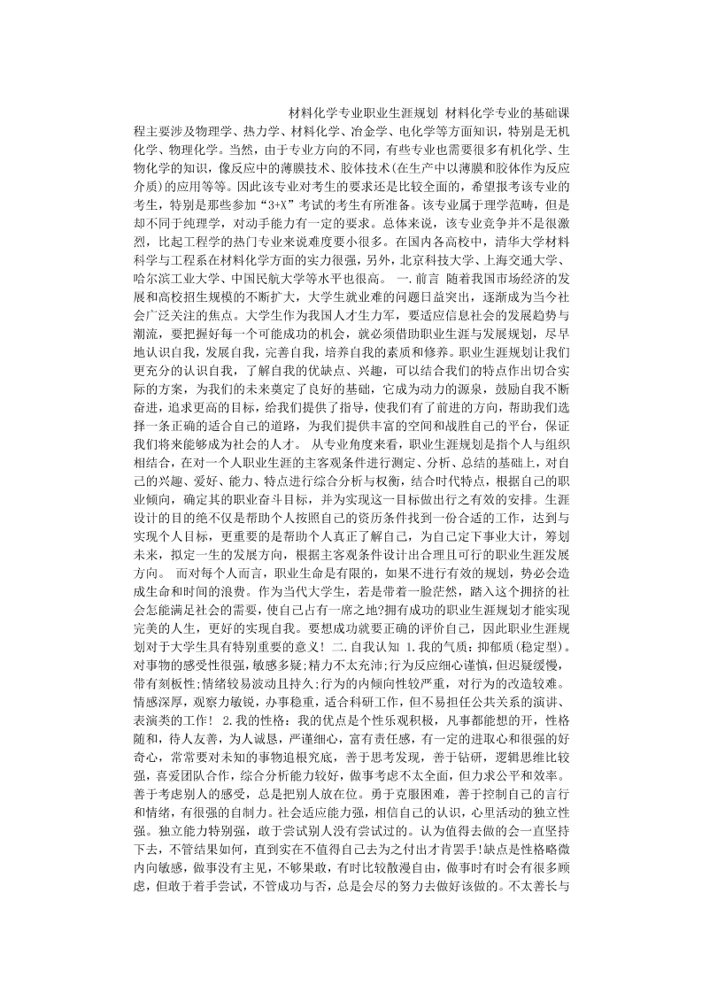 材料化学专业职业生涯规划