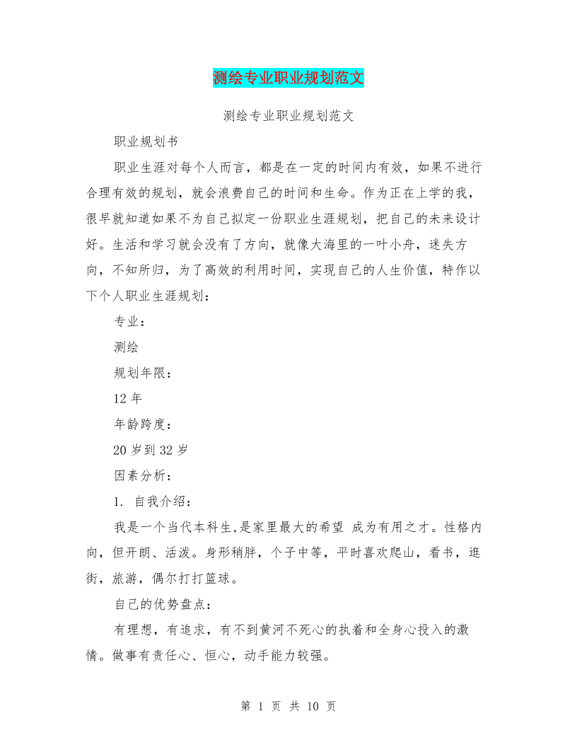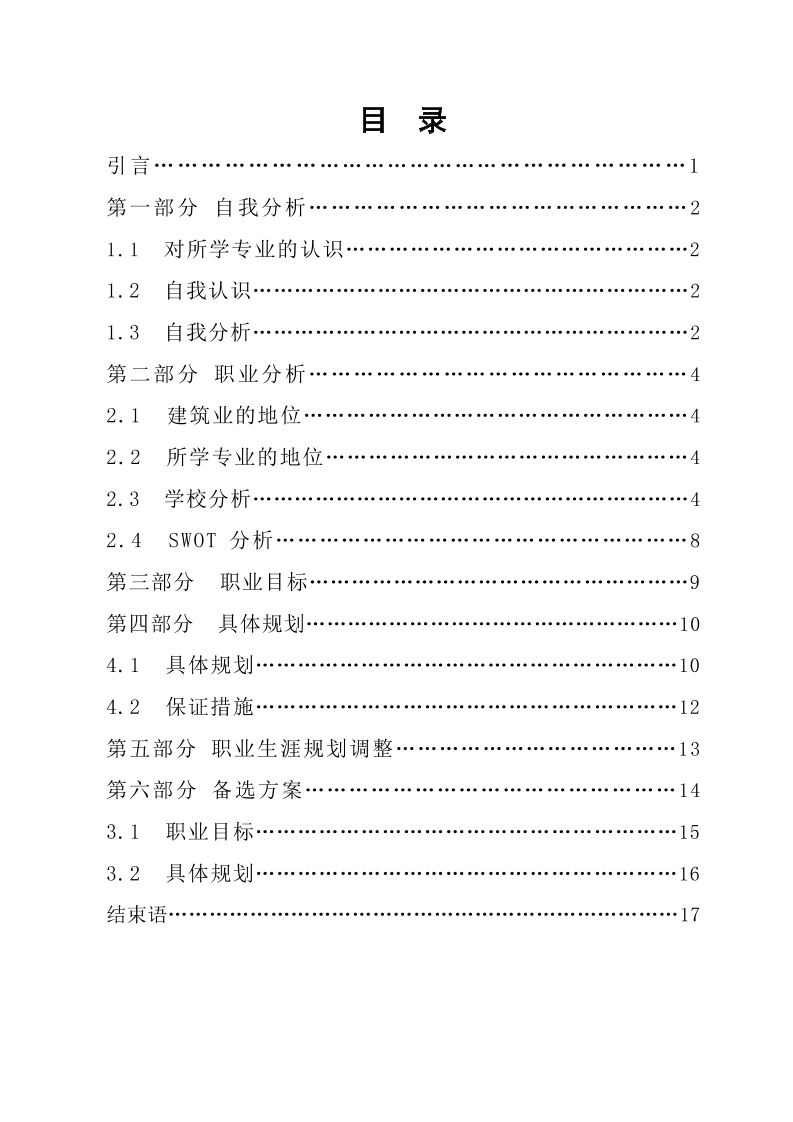 哈尔滨职业技术学院建筑工程技术专业职业生涯规划书(WORD18页)