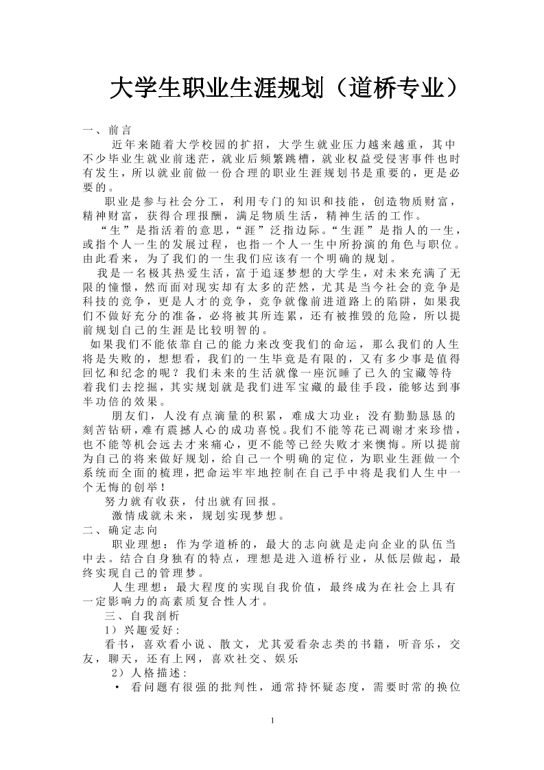 大学生职业生涯规划-道桥专业