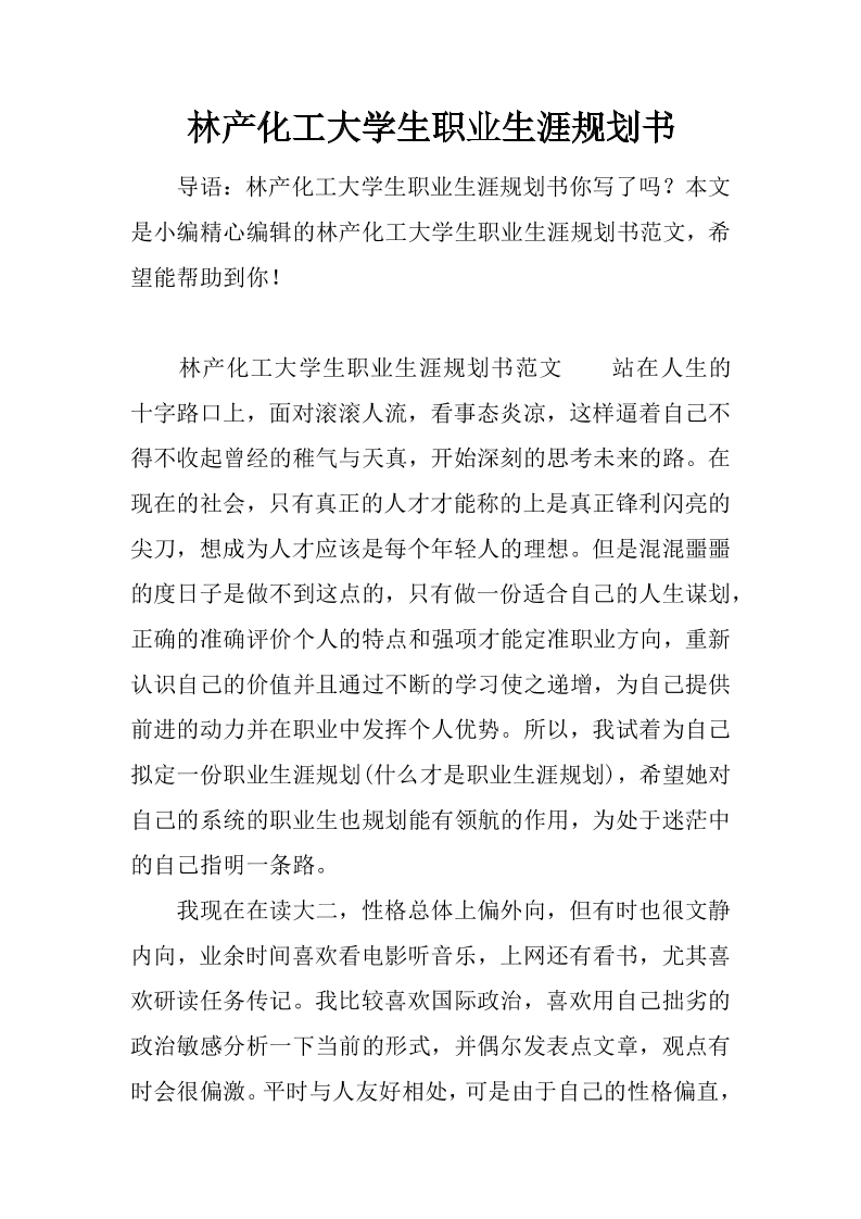 林产化工大学生职业生涯规划书