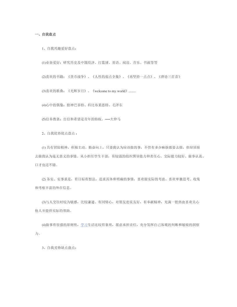 • 生涯规划书模板
