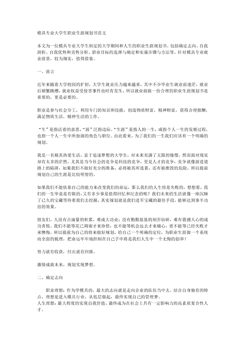 模具专业大学生职业生涯规划书范文