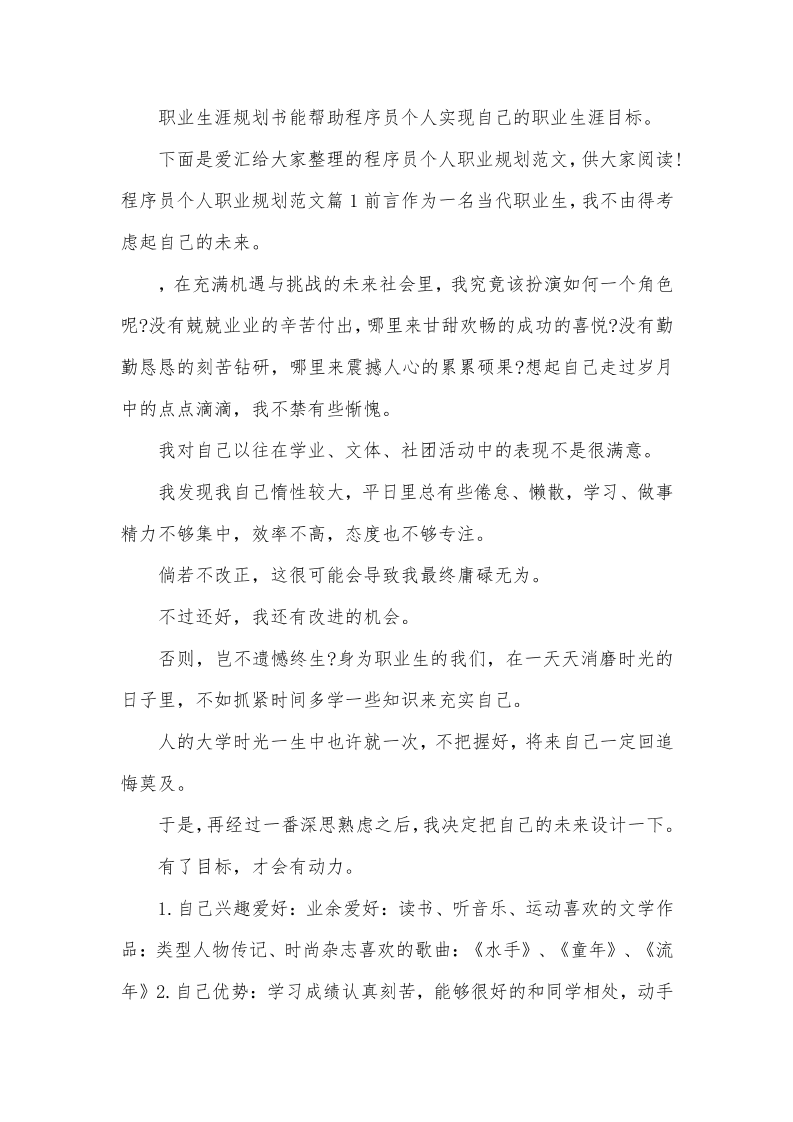 程序员个人职业规划范文