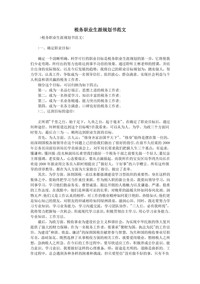 税务职业生涯规划书范文