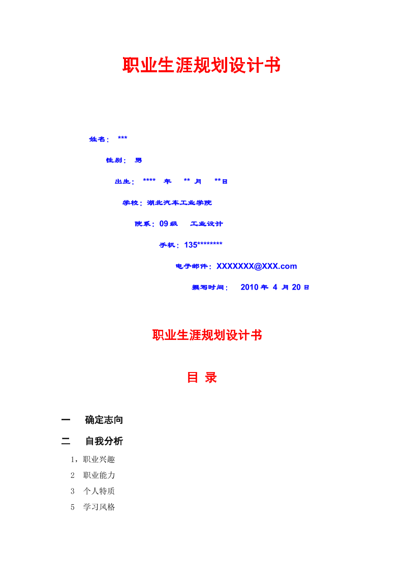生涯规划书模板