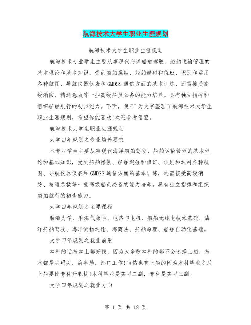 航海技术大学生职业生涯规划