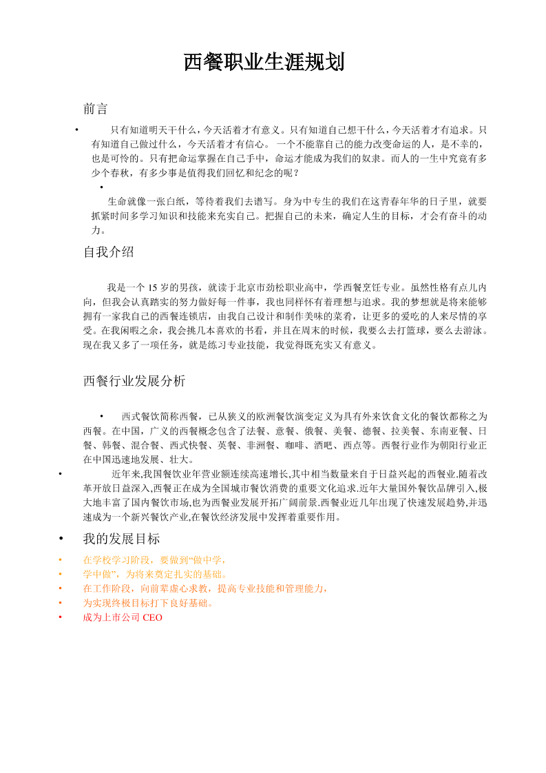 西餐职业生涯规划2