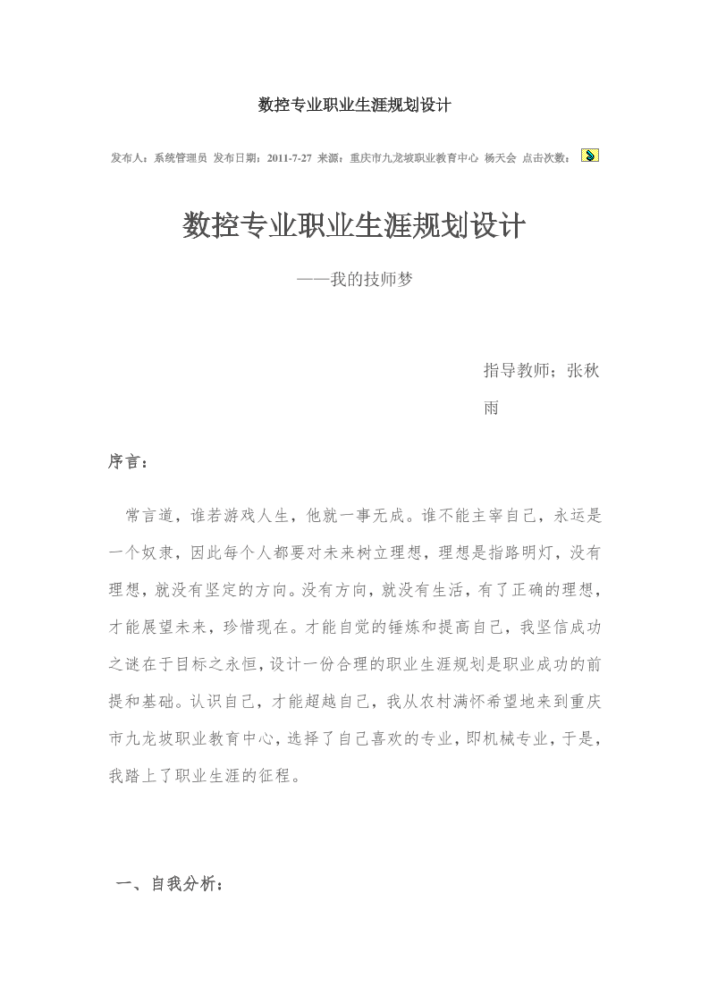 数控专业职业规划设计书