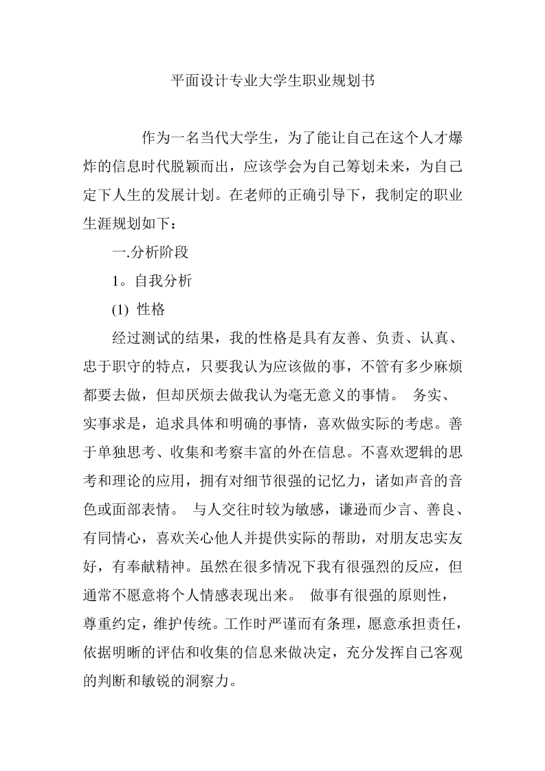 平面设计类职业规划书