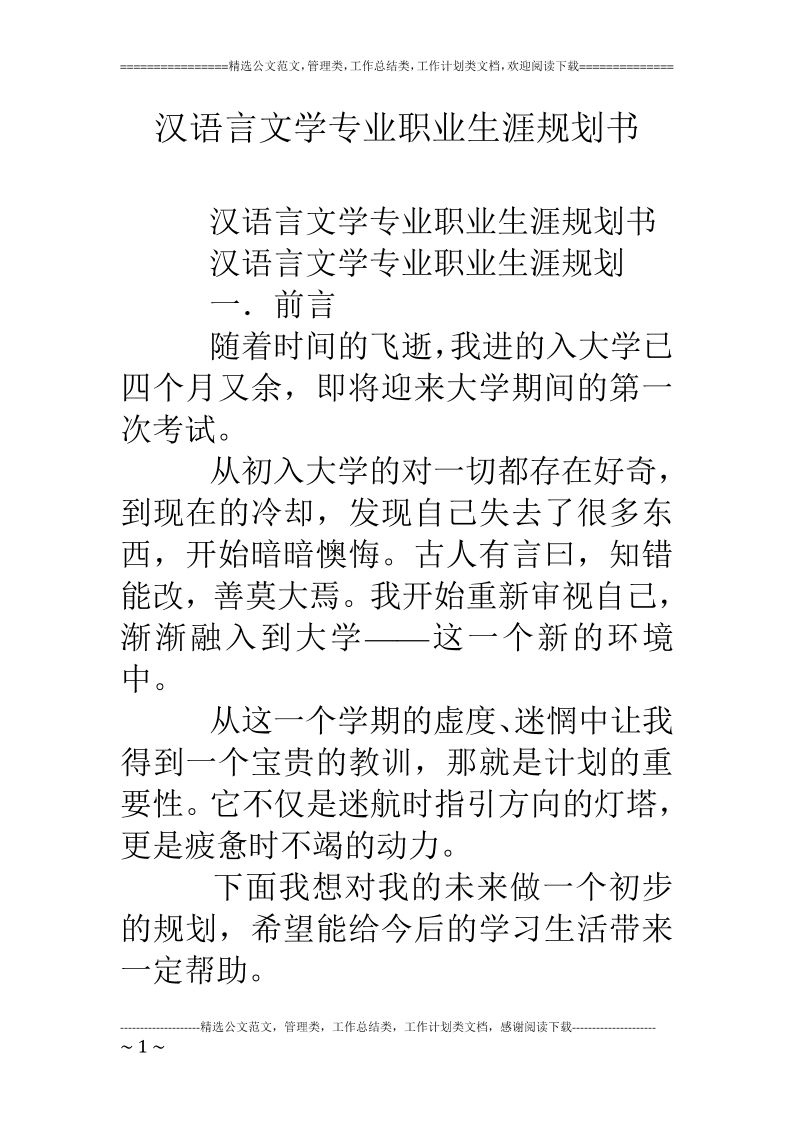 汉语言文学专业职业生涯规划书