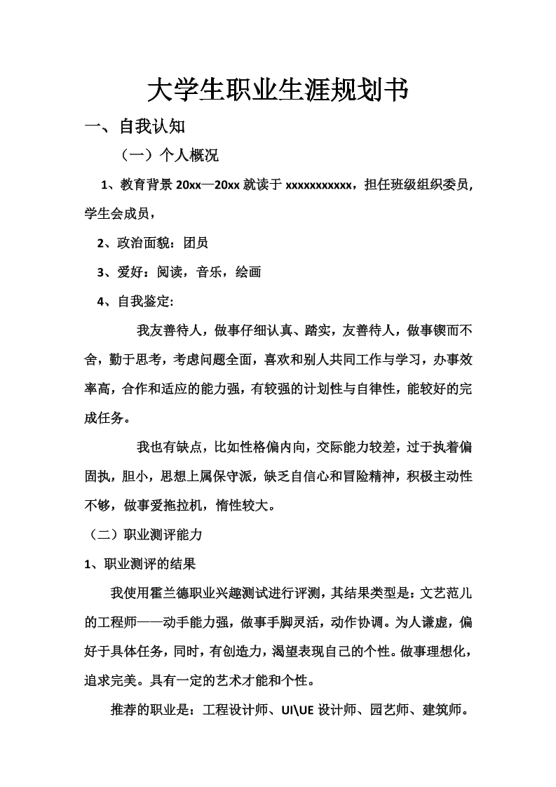 我的大学职业生涯规划(艺术设计)