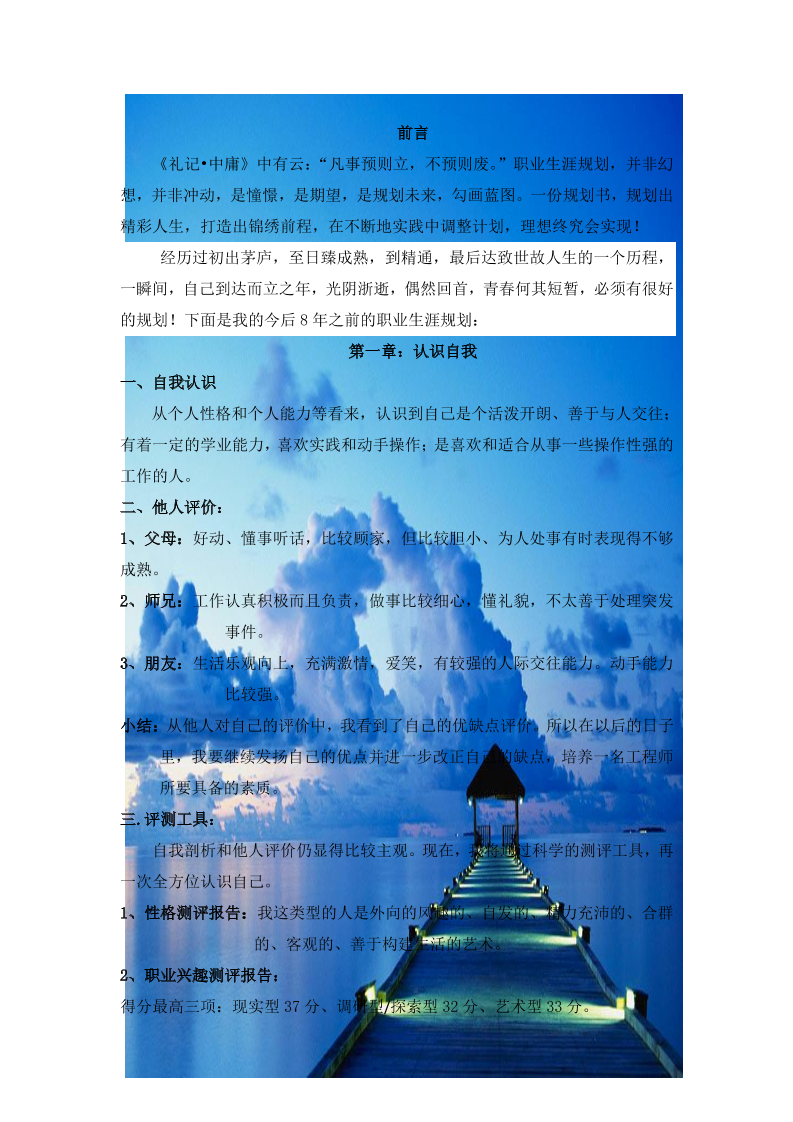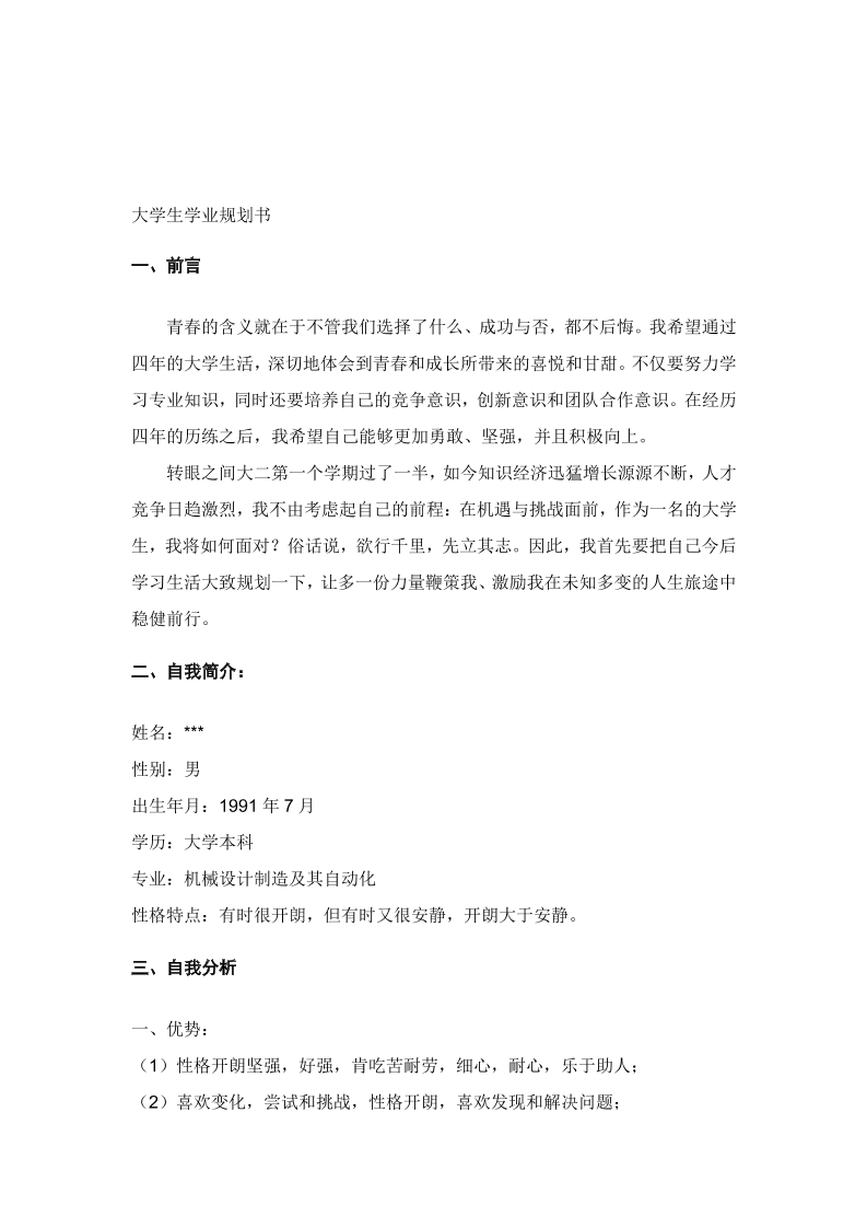 机 械 类 大 学 生 职 业 生 涯 规 划 书