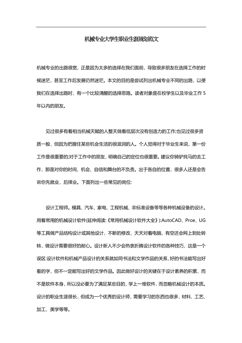 机械专业大学生职业生涯规划范文