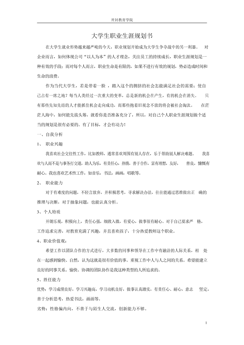 9、大 学 生 职 业 生 涯 规 划 书 教 师 职 业
