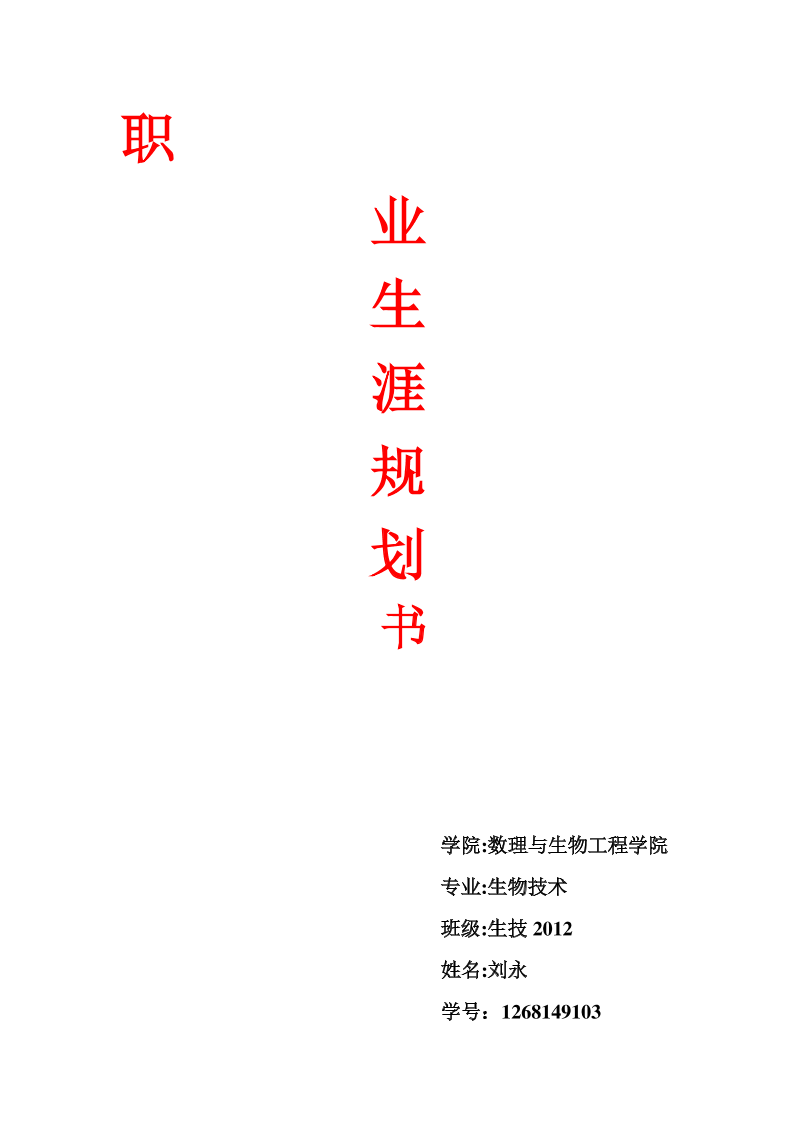 1、生物工程职业生涯规划书(1)