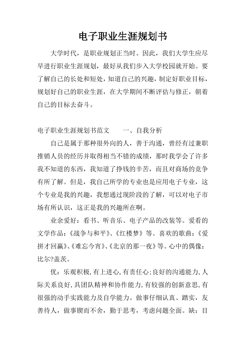 2、大学生职业生涯规划报告书-电子信息