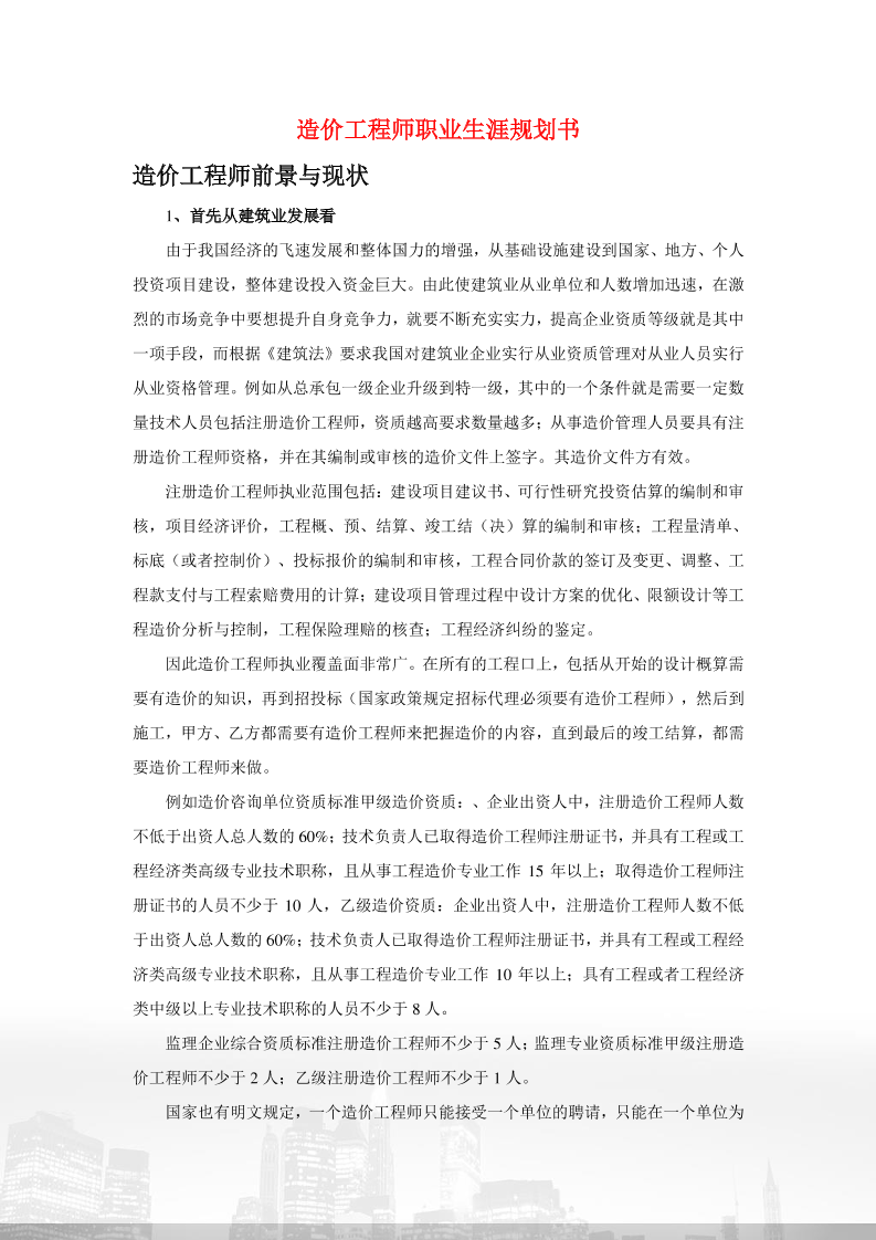 2、工程造价专业大学生职业规划范文-职业生涯规划